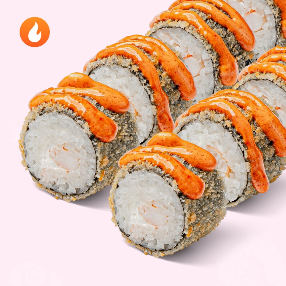 Рис, мицукан, сахар, комбу, соль, нори, сыр сливочный, креветка, майонез, паста кимчи, мука, яйцо, сухари панировочные